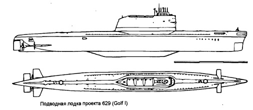 Подводная лодка проекта 629 состояла из восьми отсеков. Прочный корпус лодки был образован из цилиндра и усеченных конусов в оконечностях. В районе четвертого отсека размещались три шахты с подъемно-поворотными и пусковыми устройствами. Ракеты располагались в вертикальных контейнерах непосредственно за боевой рубкой в едином с ней ограждении. Для пуска ракет пусковой стол поднимался к верхнему срезу шахты. Пуск производился в надводном положении и мог осуществляться при волнении моря 4-5 баллов и скорости подводной лодки до 15 узлов.