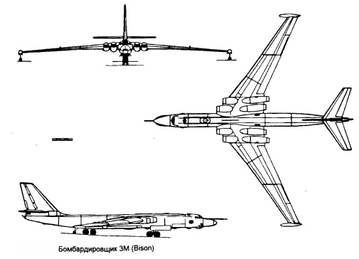 Работа над совершенствованием самолета М-4 с целью увеличения дальности полета привела к созданию нового бомбардировщика, получившего обозначение ЗМ (также М-6). Решающим изменением, позволившим достичь требуемых характеристик, стало оснащение нового самолета более экономичными и более мощными двигателями ВД-7. Первый полет бомбардировщика ЗМ состоялся в марте 1956 г." В конце 1956 г. на заводе № 23 было начато серийное производство ЗМ, заменивших собой М-4.