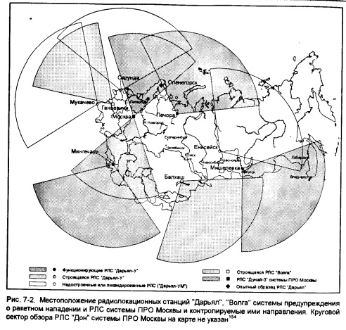 При выборе позиции для новой радиолокационной станции, которой должна была стать РЛС "Дарьял-УМ”, разработчиками было предложено создать новый узел в Красноярском крае. Руководство Войск ПВО возражало против такого решения, предлагая проработанный к 1979 году вариант развертывания РЛС в районе Норильска.143 Такая позиция руководства Войск ПВО страны учитывала ограничения, накладываемые на развертывание РЛС СПРН Договором по ПРО. В соответствии с положениями этого договора станции СПРН могут размещаться только по периметру национальной территории причем так, чтобы быть ориентированными за ее пределы. Основным аргументом против размещения РЛС в Заполярье являлась чрезвычайно высокая стоимость осуществления работ.