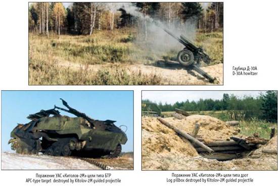 Применение комплекса «Китолов-2М» существенно повышает эффективность батальонной артиллерии за счет прямого попадания в цель снаряда «Кито- лов-2М» и значительно большего могущества его боевой части по сравнению со штатным ОФС калибра 122 мм. Артиллерия батальонного звена помимо традиционных для нее целей (легкобронированная техника и инженерные сооружения) может успешно поражать танки, в том числе и движущиеся.