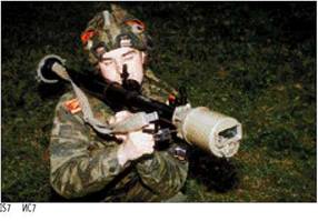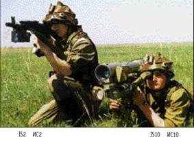 Лазерный имитатор состоит из имитатора стрельбы (ИС), устанавливаемого на стволе штатного стрелкового оружия или размещаемого в контейнере средства ближнего боя, и имитатора поражения личного состава (ИП1), выполненного в виде жилета и наголовника, закрепляющегося на каске. Имитация выстрела осуществляется с помощью холостых патронов (пиропатронов) или в электронном режиме.
