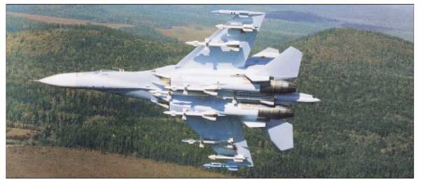 щика Су-32. Демонстрировался разведывательно-ударный истребитель берегового базирования Су-32ФН. Учебно-боевой Су-27УБ (экспортный вариант - Су-27УБК) получил развитие по нескольким направлениям. На его базе был построен истребитель-перехватчик Су-30. Самолет оснащен системой дозаправки топливом в полете и бортовым оборудованием, обеспечивающим групповые действия. Су-30 стал основой для создания Су-30МК - экспортного варианта многофункционального истребителя, в процессе разработки которого использованы технологии Су-35, а также расширен спектр применяемого вооружения по наземным целям. Впервые Су-30МК демонстрировался в марте 1994 г. на Международной выставке FIDAE'94 в Чили.