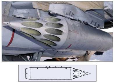 Предназначен для пуска всех модификаций НАР типа С-8 с самолетов фронтовой авиации. В один блок заряжается 20 НАР типа С-8.