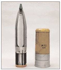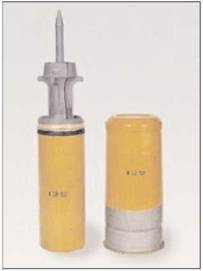 Отличительная особенность снаряда - снаряжение прессованием в корпус.