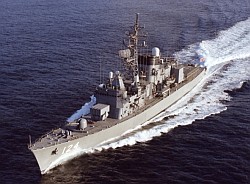 Силовая установка, состоящая из двух газовых турбин суммарной мощностью 45 000 л.с., обеспечивает движение с максимальной скоростью 30 узлов.