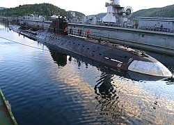 Первые шесть подводных лодок класса "Кефаль" поступили на вооружение в 1967 г. и имеют водоизмещение 4600 - 5680 тонн. Они вооружены восемью носовыми торпедными аппаратами, способными вести огонь, и противолодочными ракетами. У всех российских атомных подводных лодок передние рули высоты расположены в носовой части корпуса. На подводных лодках класса "Кефаль" установлен один гребной винт, позволяющий развивать скорость до 33 узлов.