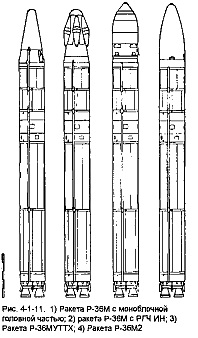 Для размещения на ракете Р-36М была создана разделяющаяся головная часть 15Ф143 и моноблочная ГЧ 15Б86, принятая на вооружение 20 ноября 1978 г. В период с июля 1978 г. по август 1980 г. были проведены летные испытания предназначавшейся для Р-36М самонаводящейся головной части 15Ф678, оснащавшейся двумя вариантами аппаратуры визирования.0 В варианте с самонаводящейся ГЧ ракета не развертывалась.