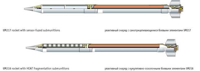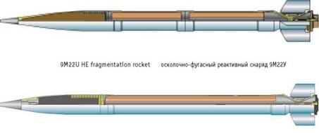 осколочно-фугасный реактивный снаряд с отделяемой головной частью 9М522. Эффективность поражения целей в б раз выше, чем у 9М22У.