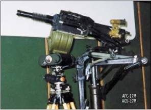 Может вести стрельбу в режиме кругового обзора. АГС-17М устанавливается на шкворневой или турельной установке. Гранатомет универсален, размещается на подвижных транспортных средствах, оперативно доставляющих его к месту боевых действий с одновременным увеличением разового боекомплекта. Мобильные установки могут быть многовариантными и допускать монтаж на них дополнительного вооружения и средств разведки (ПТУРС, пулемет, приборы наблюдения и т.п.).