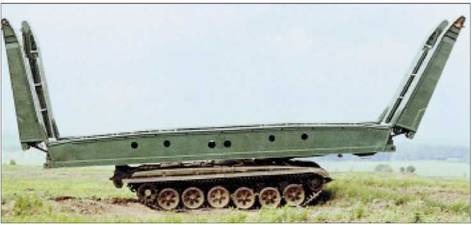 В состав мостоукладчика входят: мостовое оборудование, система защиты экипажа от ОМП, противопожарное оборудование, термодымовая аппаратура для