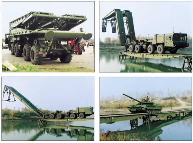 ТММ состоит из мостоукладчика и мостовых блоков. Мостоукладчик - полноприводной автомобиль высокой проходимости (колесная формула 8 х 8), на