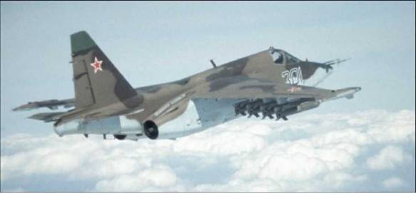 Высокая маневренность позволяет самолету Су-25 поражать цели с первого захода, эффективно использовать рельеф местности для выхода из атаки.