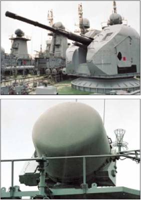 - морская двухдиапазонная система управления стрельбой МР-123-02 (МР-123-02ц) с радиолокационным и телевизионным каналами сопровождения, автономным секторным обзором, вычислительным устройством и аппаратурой управления;