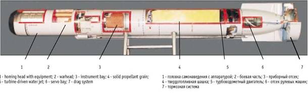 - в составе морских ракетных противолодочных комплексов в качестве носимых самонаводящихся боевых частей с отделением от ракетоносителей в воз-