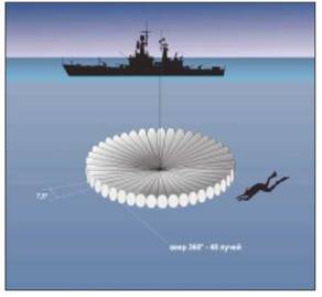 - обнаружения в активном режиме подводных пловцов и диверсантов со средствами передвижения и без них;