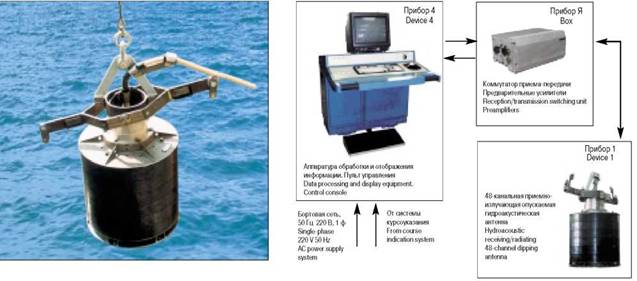 Антенная система с помощью корабельного оборудования опускается с борта корабля. Электронные блоки, размещенные в соединительном ящике и пульте управления, обеспечивают излучение, прием и обработку сигналов. Устройство отображения и управления состоит из цветного дисплея, клавиатуры и шарового манипулятора. Станция обслуживается одним оператором. Устанавливается на надводных кораблях или стационарно.