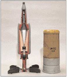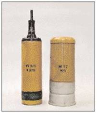 Отличительная особенность снаряда - снаряжение прессованием в корпус.